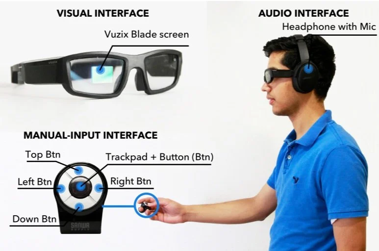 Although we tested on-the-go scenarios with realistic path challenges, we could not extend the study outdoor to preserve maximum text visibility on the smart glass display. How ambient light and ambient noise of outdoor conditions would affect our system’s performance remains to be seen. Also, voice interaction can sometimes be undesirable in public for security/social reasons. An in-depth study of safety and social factors warrants further investigation in future work.