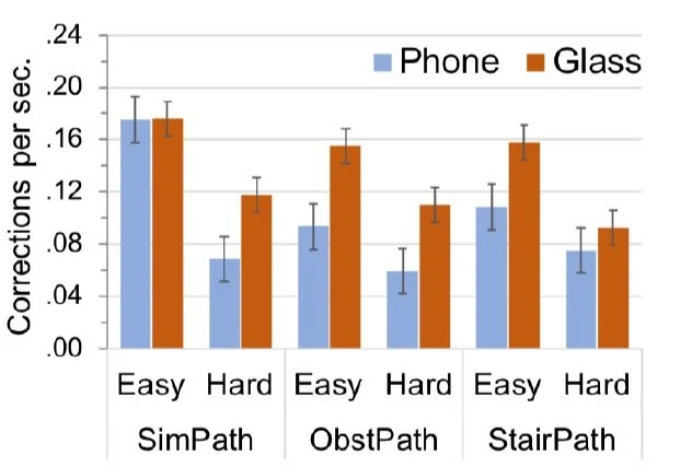The glass had a significant advantage over the phone when either the path or the task presented a high cognitive load.